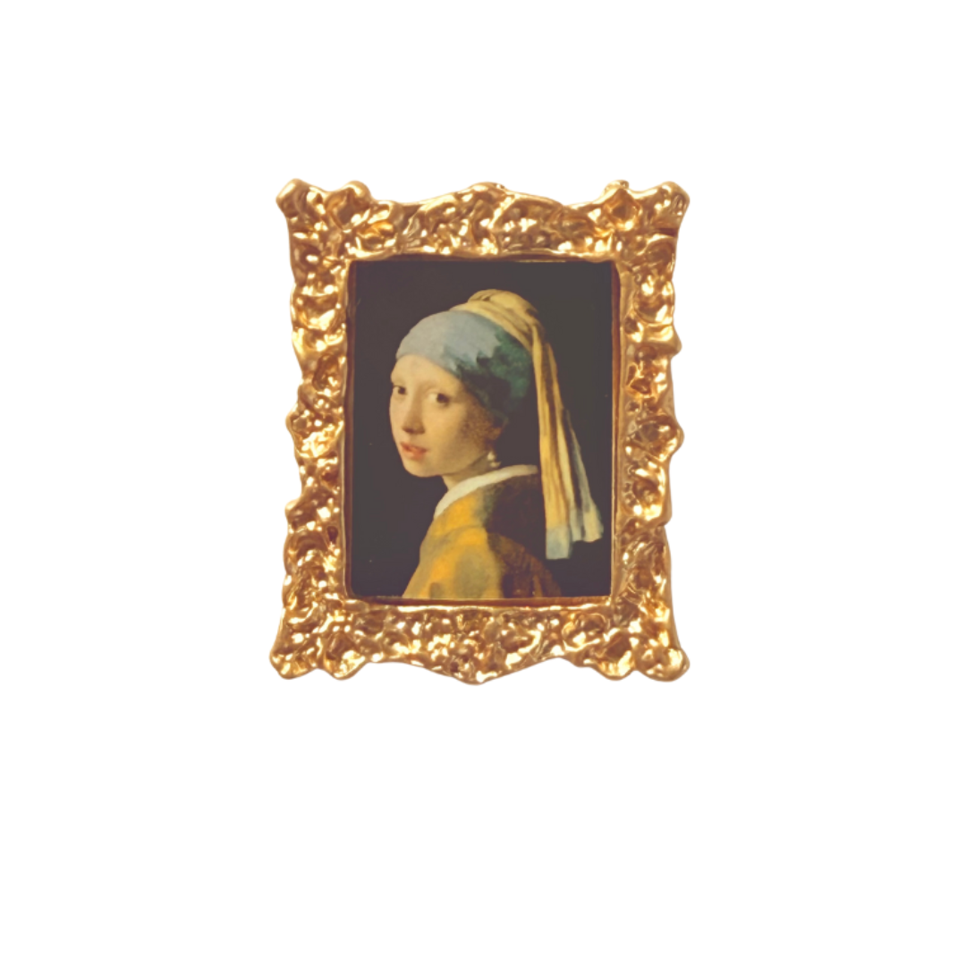 Deze magneet Meisje met de parel toont een gedetailleerde afbeelding van Johannes Vermeers beroemde schilderij, gepresenteerd in een klein schilderijtje. Het compacte formaat van 30 × 40 mm maakt de magneet een stijlvolle toevoeging aan elke magnetische ondergrond.