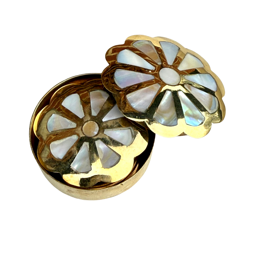 Handgemaakte sieraden doosje van messing en schelp. De doosjes passen in elkaar.